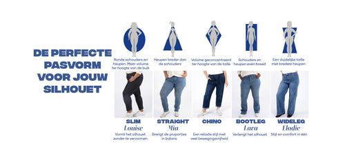 De bootcut jeans is vooral geschikt voor lichaamsvormen met bredere heupen dan schouders en voor silhouetten met een duidelijke taille, omdat hij de proporties in balans brengt door meer volume aan de onderkant toe te voegen. Hij is ook ideaal voor lichaamsvormen met brede schouders, omdat hij de schouderlijn verzacht en harmonie toevoegt aan het geheel. Kortom, het is een flatterende pasvorm voor iedereen die zijn silhouet wil verlengen en in balans wil brengen.