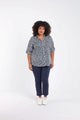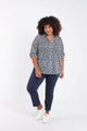 • Ons model Sharon is 178 cm lang en draagt ​​maat 48