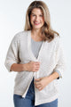 Lang, effen, opengewerkt vest in wol
