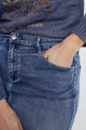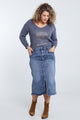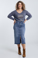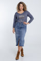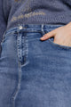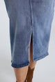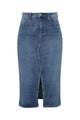 Halflange, effen rok met split vooraan en 5 zakken