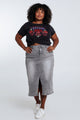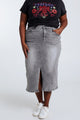 Halflange, effen rok met split vooraan en 5 zakken