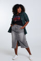 • •  Halflange rok met split vooraan