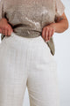 Linnen en viscose broek met lurexdetail