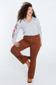 Lange, effen broek in katoen met 5 zakken