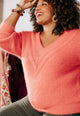 • Effen gebreide trui met pluizige structuur-Paprika-3