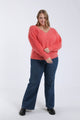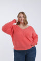 • Effen gebreide trui met pluizige structuur-Paprika-4