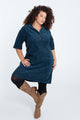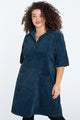 Korte, effen corduroy jurk met opgestikte zakken