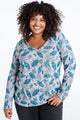 Warm gebreid T-shirt met bladprint en strasssteentjes