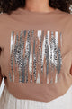 Effen katoenen T-shirt met folieprint en luipaardprint