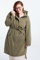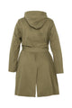 • Halflange, effen trenchcoat met rits, kap en strikriem-Paprika-2