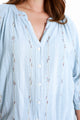 Blouse en coton unie avec détail multicolore