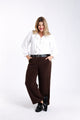 • Pantalon large en velours côtelé avec ceinture-Paprika-1
